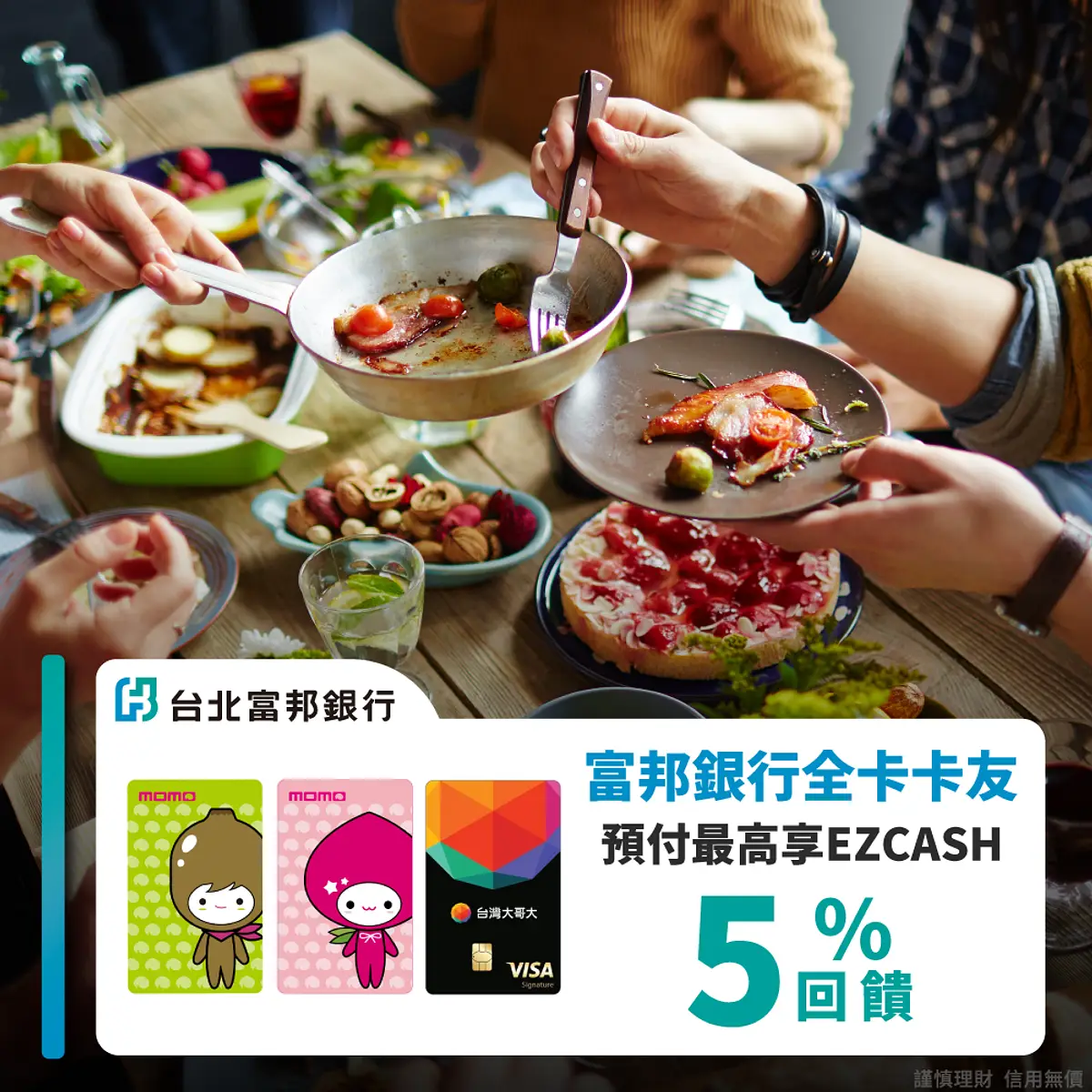 富邦銀行信用卡全卡預付最高享 EZCASH 5% 回饋