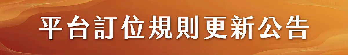 (2) 取消率限制:若該帳號在一個月內已成立的訂單取消率超過 60%,系統將自動暫停該帳號之預訂權限,停權期限為一年。感謝您的理解與配合,讓我們一起維護良好的預訂環境。