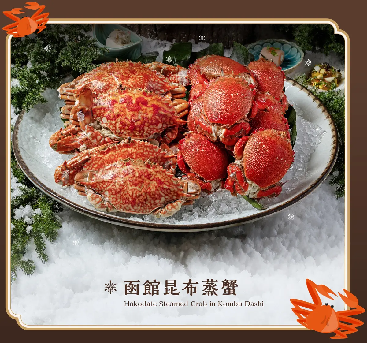 以昆布高湯溫潤蒸煮,蟹肉吸飽湯汁鮮香,甜味自然釋出。