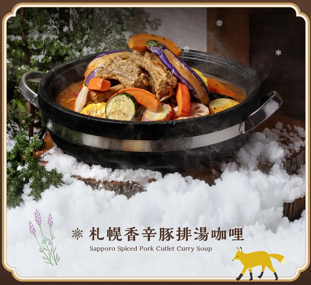 以札幌冬季名物湯咖哩為概念,師傅將豬肉細火燉煮至柔軟入味,湯底融合香料與蔬菜高湯,香氣層次深厚。