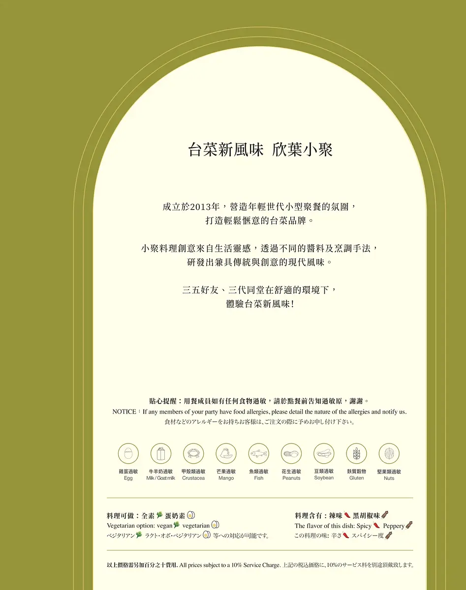 「欣葉小聚」成立於2013年,以年輕世代小型聚餐為訴求,打造輕鬆時尚的台菜品牌。
