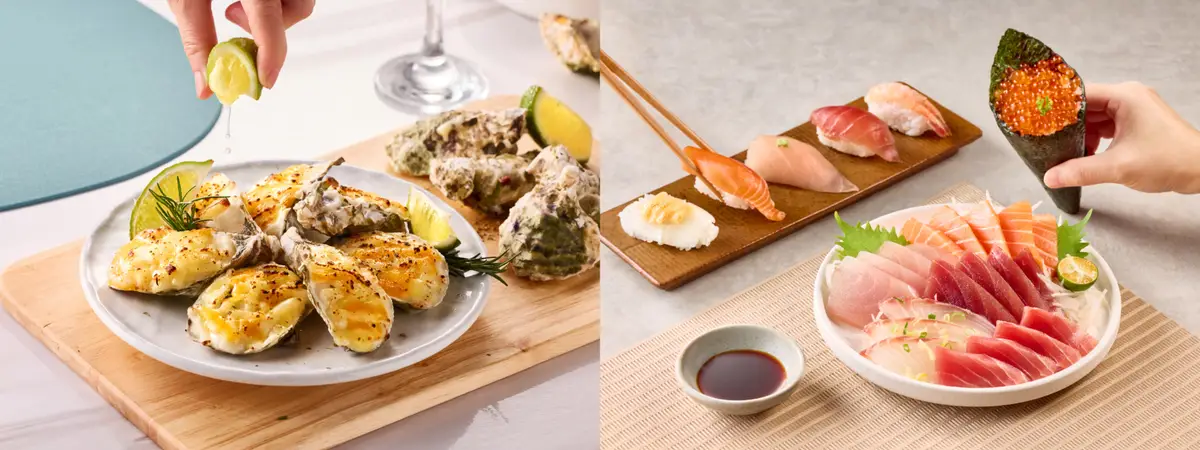 特選太平洋海域的肥美鮪魚,零下50度急凍保鮮;鮭魚選自純淨的蘇格蘭/挪威海域,全程7度C冰鮮空運,油脂肥美、軟嫩鮮甜!還有炙燒壽司、手捲等人氣日料,讓你一貫接一貫不停口! ◇ 視季節食材供應狀況不定期調整 |