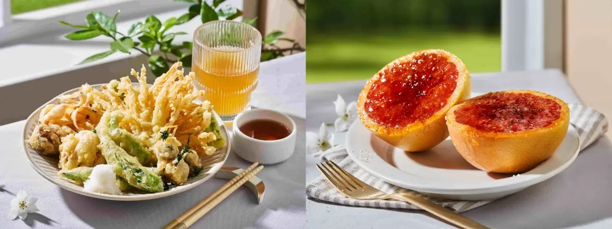 嚴選時令蔬菜經輕薄麵衣酥炸,沾裹日式和風醬汁,一口咬下,呈現自然甘甜美味。 ◇ 素別:依現場餐點標示 |