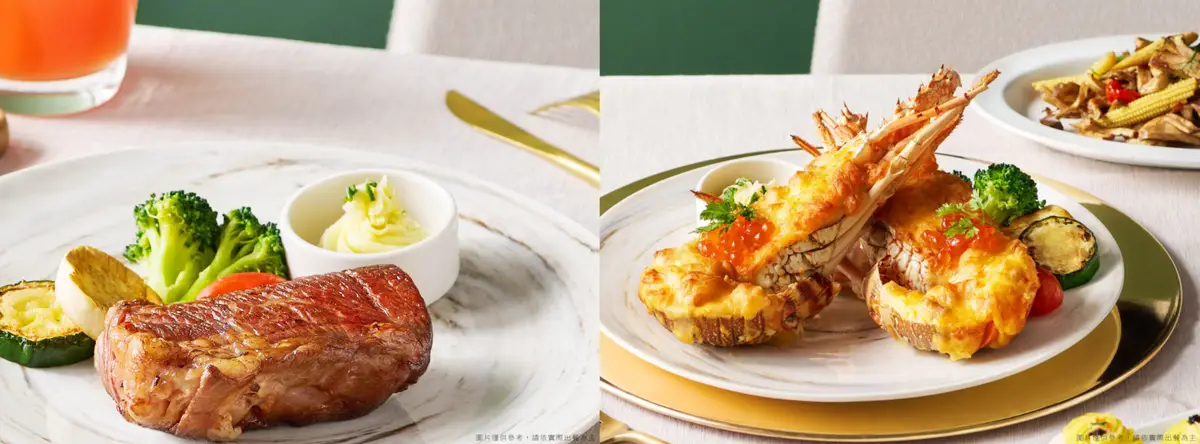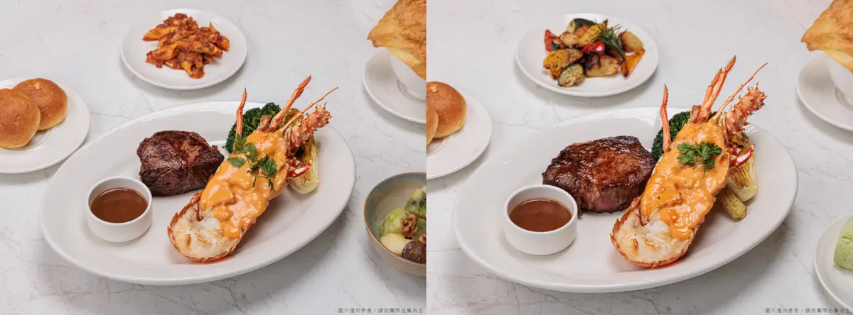 龍蝦肉質鮮美,香氣十足,成就海味滿溢的上乘口感,搭配Prime板腱牛排,取自肩胛精華部位,肉質細緻且富有口感。 |