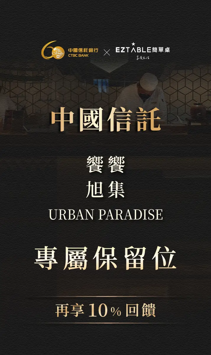本活動內餐廳所提供之商品或服務係由合作餐廳提供,中國信託僅提供各項優惠訊息,並非商品或服務之出售人,與參與餐廳之間並無代理或提供訂位等其他保證,持卡人對於提供服務內容有任何爭議,請逕洽參與EZTABLE尋求協助。