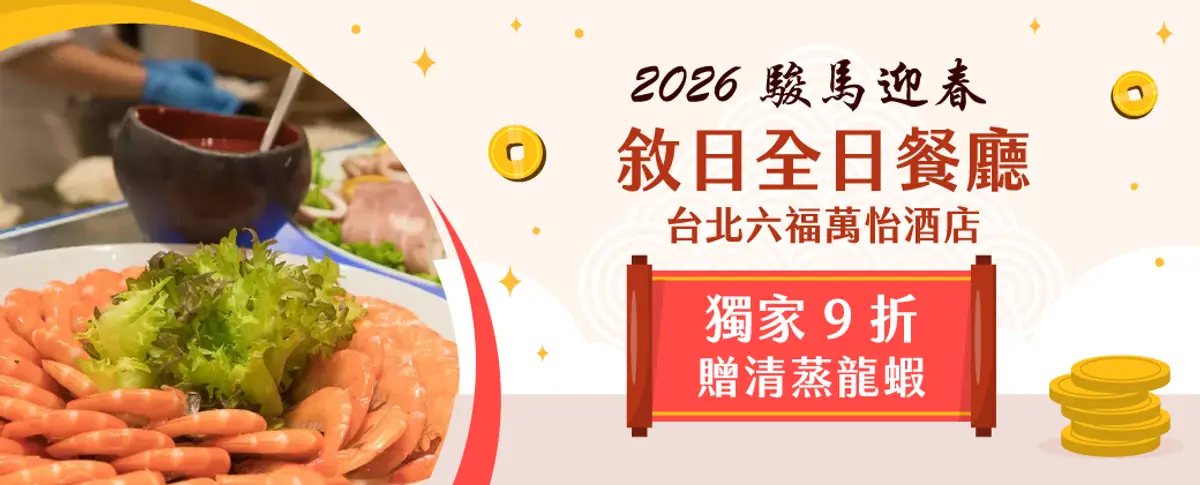 六福萬怡酒店 敘日全日餐廳訂位》澎湃海港季 9 折獨家優惠|最高享 2% 回饋|再享信用卡 15% 折扣