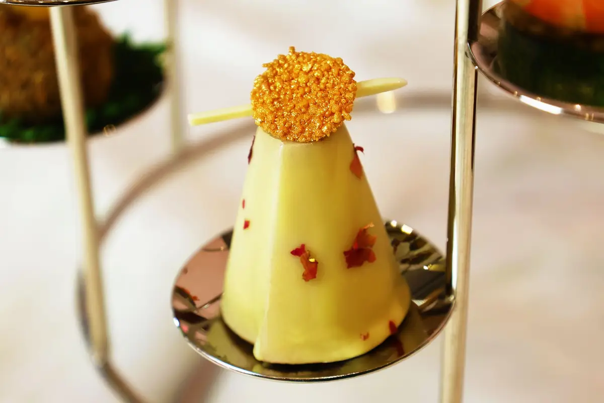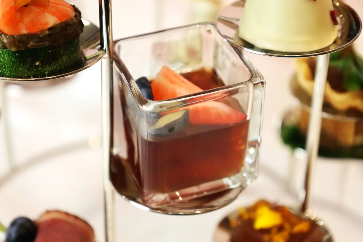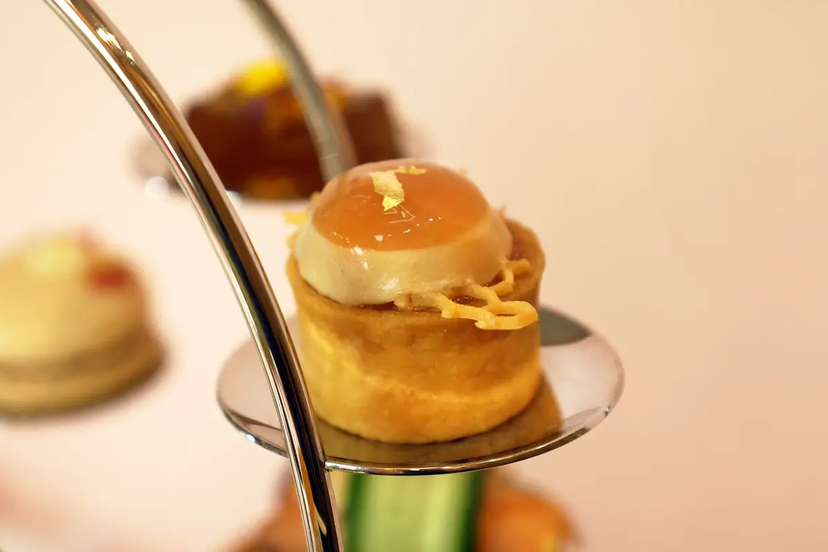主廚團隊選用仕女伯爵茶、胭脂莓果茶、薑芒綠茶等代表性茶款,將茶葉透過浸萃或研磨融入料理之中,讓茶香不只存在於茶杯,而是延伸至鹹點與甜點的每一道細節,12 款鹹甜點呈現層次分明、清新優雅的風味節奏。