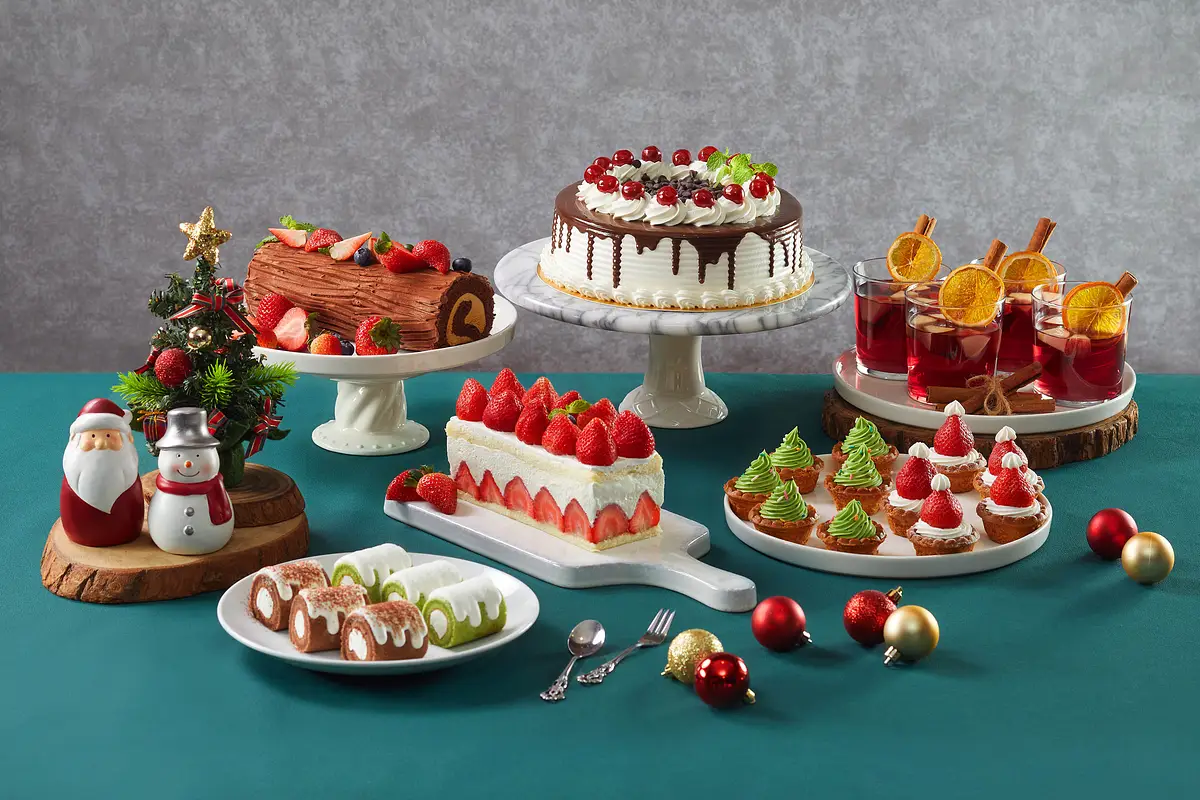 品味完豐盛主菜,讓繽紛甜點為美好食光再添驚喜,季節限定的樹幹蛋糕、聖誕老人草莓塔、聖誕樹抹茶塔、奶油蛋糕卷、冬日蜂巢蛋糕、聖誕圈圈等琳瑯羅列,個個療癒吸睛,甜美誘人。