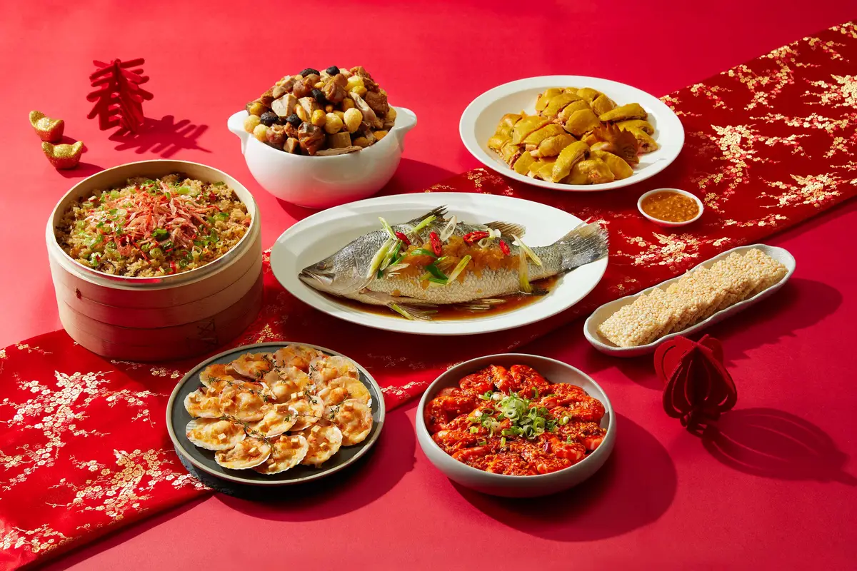 以豐盛應景的年節美饌結合閩南、客家地方風味,端出一品佛跳牆、瓜綿豆醬蒸鱸魚、瑤柱仙草燉雞湯、香酥紅糟鰻、柿餅擂茶塔等特色料理,打造新春歡聚的澎湃盛宴。