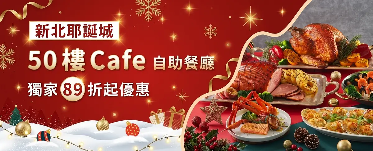 萬眾矚目的年終壓軸盛會「新北歡樂耶誕城」將於 11 月 14 日點燈開城,擁有絕佳高空視野、與耶誕城主場僅一街之隔的「50樓Café自助餐廳」,是觀賞璀璨美景的最佳制高點,每年皆被評為遊城必訪的美食地標。