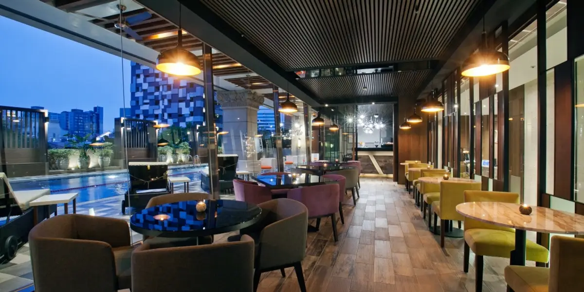 穿透光與影,可享受暖陽與星空的獨立餐飲空間,搭配主廚用心烹飪的佳餚,有單點輕食料理、午間獨享套餐、、特製開胃菜、自製創意漢堡等,讓嘉賓用餐的同時享受落地窗外,波光粼粼的池畔與那枝葉扶疏的白水木,讓美食與美景同步播放。