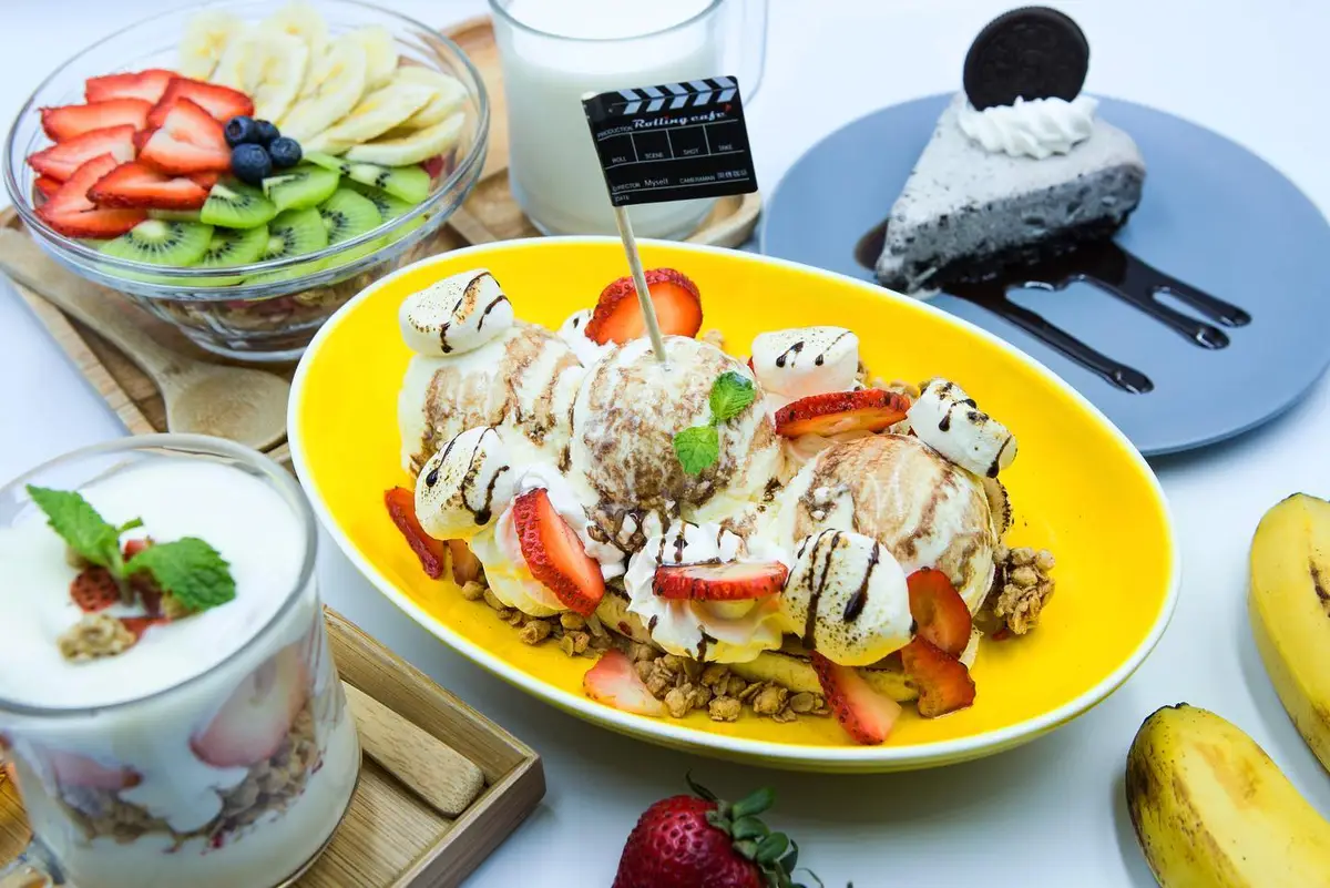 店名ROLLING源自片場的專業用語,店內布置引領大家體驗電影片場氛圍,放置許多與電影相關擺設, 是西門町少數從早上10點營業到凌層1點的餐廳。