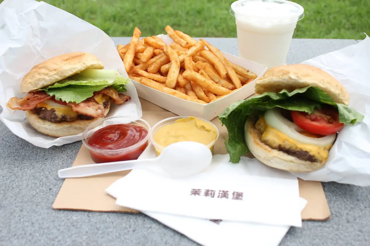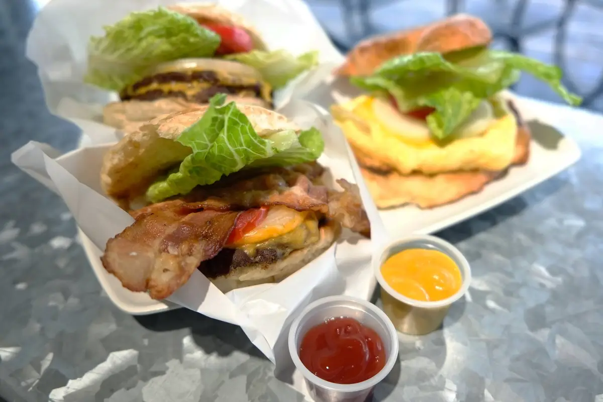 牛肉起司漢堡,牛肉醬熱狗,歐姆蛋早午餐,素肉起司漢堡