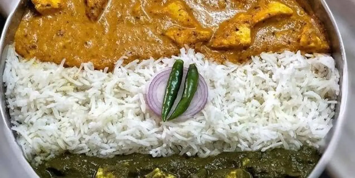 黃豆仁咖哩,香辣羊肉馬鈴薯,豆粉炸菠菜,香料脆餅,茴香炒飯