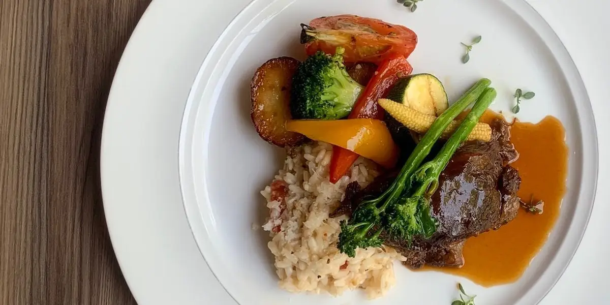 希臘沙拉,田園時蔬扁麵,白酒蛤蜊扁麵,肋眼牛排,黑松露野菇燉飯