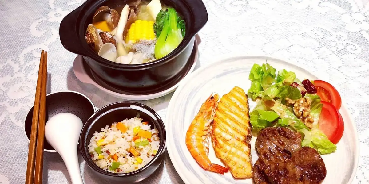 黃金蟲草雞,龍膽石斑鍋,私房控肉飯,香煎松阪豬,鮪魚玉米起司鬆餅