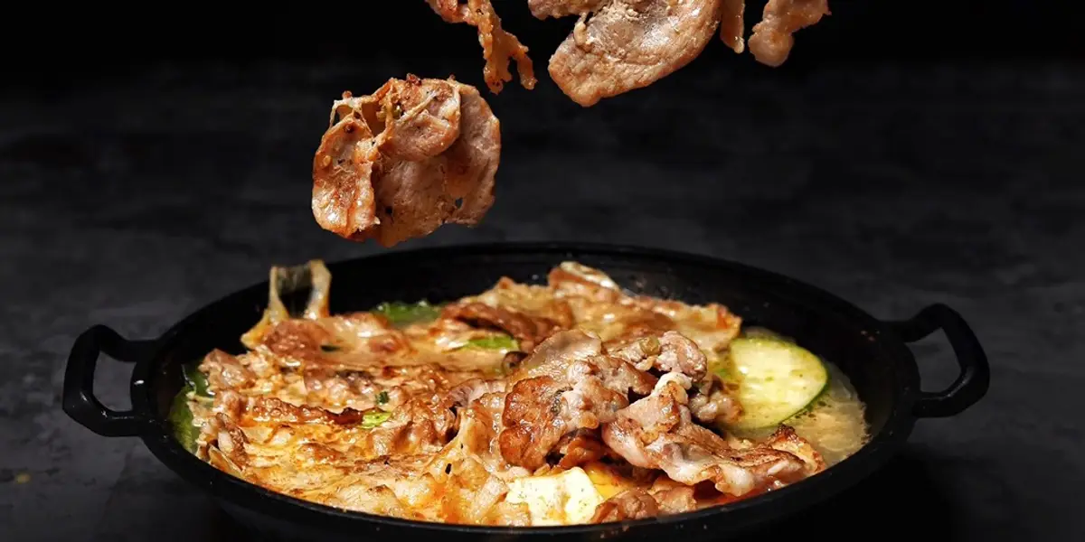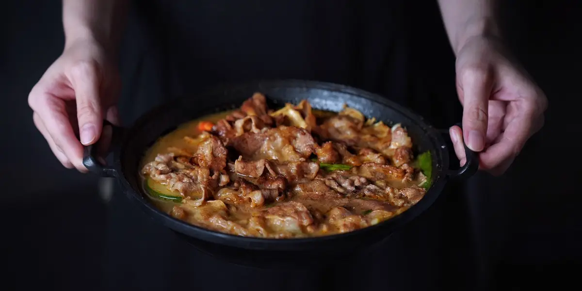 招牌的燒肉火鍋,是在火鍋上鋪滿燒肉的美味料理
