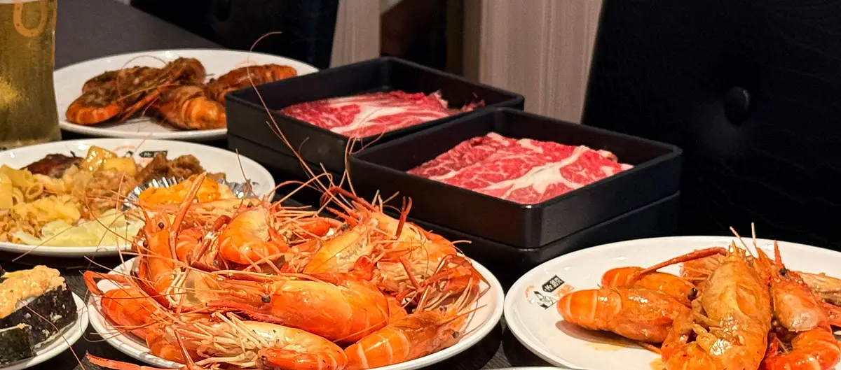 食材部分提供多款嚴選肉品、新鮮蔬菜與豐富海鮮,搭配飲料、冰品與醬料齊全的自助吧,讓用餐體驗更完整。