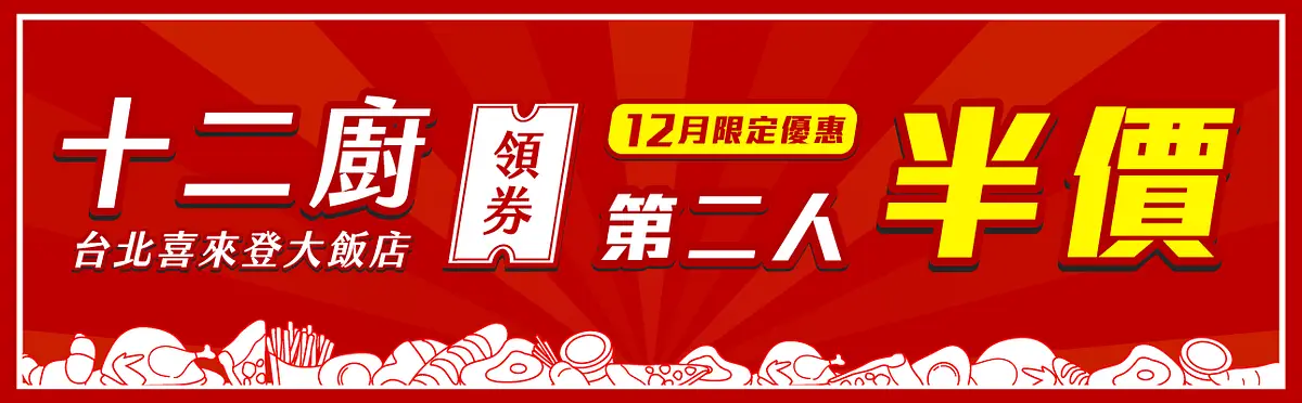 十二廚台北喜來登訂位|12 月限定第二人半價優惠|再享信用卡 15% 折扣