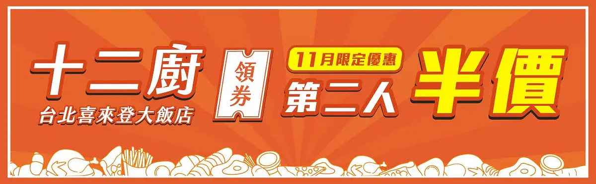 十二廚台北喜來登訂位|11 月限定第二人半價優惠|再享信用卡 15% 折扣